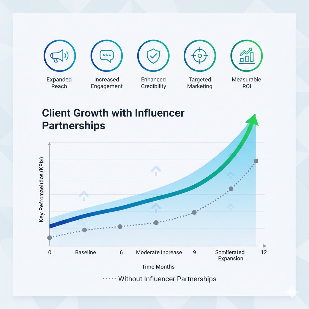 • Enhanced Credibility: Benefit from the social proof and authority influencers bring, building trust and loyalty for your brand.